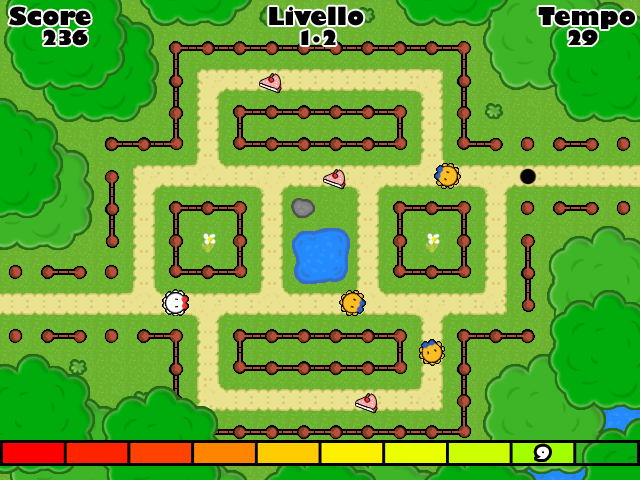 Queste sono state le parole per descrivere il progetto sul forum. Nella creazione mi sono imbattuto in delle domande che poi ho integrato nella trama stessa: come mai è a tempo? Che personaggio si interpreta? Raccogliendo degli schizzi e dei disegni su una creatura che avevo ideato tempi fa, la rimodellai per farcela stare nel progetto, dando vita a dei mostriciattoli che si ingozzano di dolci! Inoltre volevo dare un tocco di personalizzazione personale e quindi creai una grafica semplice ma accattivante in modo da invogliare il giocatore a continuare!
